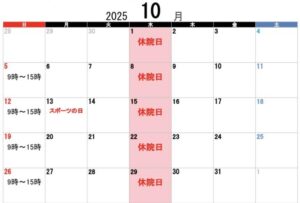 10月2日(木)~5日(日) 整骨院空き状況です。
