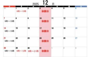 1日(月)~2日(火) 整骨院空き状況。*1日9時~15時までの受付になります。